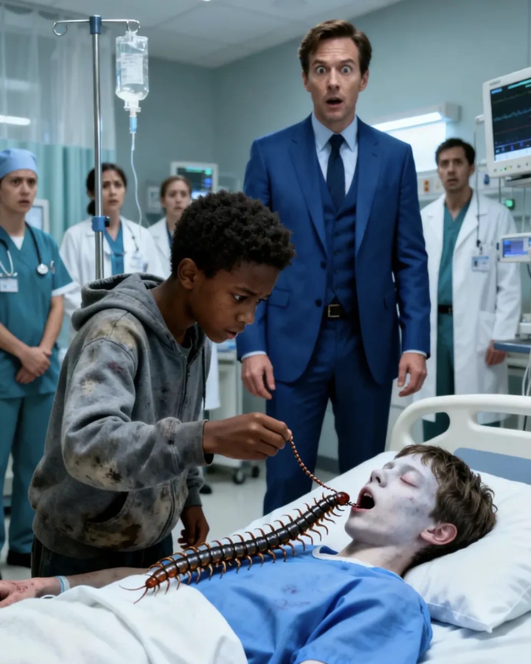 En medio del caos estaba un niño de diez años, con zapatillas gastadas y mangas deshilachadas, completamente fuera de lugar entre médicos de élite.