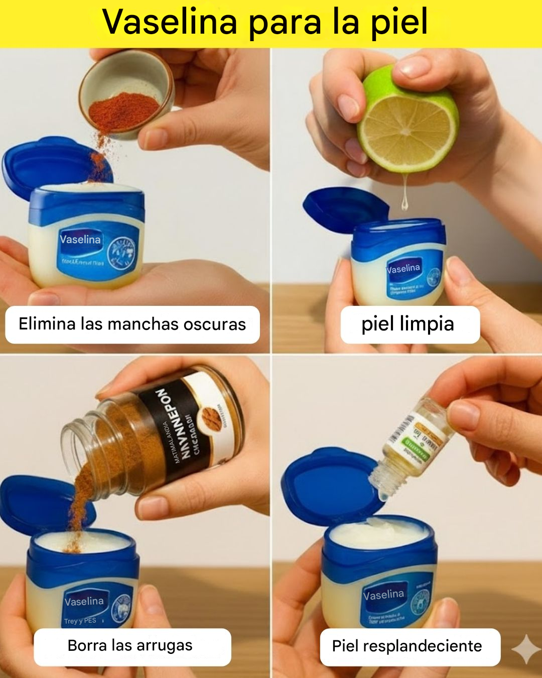 Ya sea que quieras atenuar manchas oscuras, hidratar la piel seca o incluso estimular el crecimiento del cabello, la vaselina se puede transformar en un tratamiento casero efectivo al combinarla con ingredientes naturales. Aquí tienes 9 maneras inteligentes y sencillas de usarla para una piel suave, radiante y de aspecto juvenil.