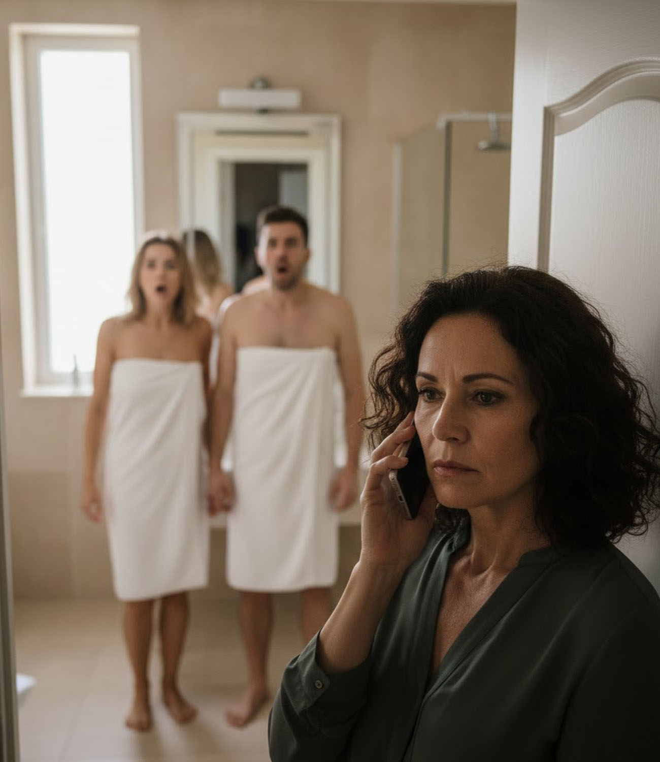 Me quedé allí con las llaves aún en la mano, con el corazón acelerado pero la mente repentinamente aguda. Reconocí la risa. Lisa Bennett. Nuestra vecina. Compartíamos barbacoas, viajes escolares compartidos y sonrisas educadas sobre la cerca. Su esposo, Daniel, trabajaba muchas horas y confiaba plenamente en ella. Sentí una calma fría apoderarse de mí mientras me acercaba a la puerta del baño.