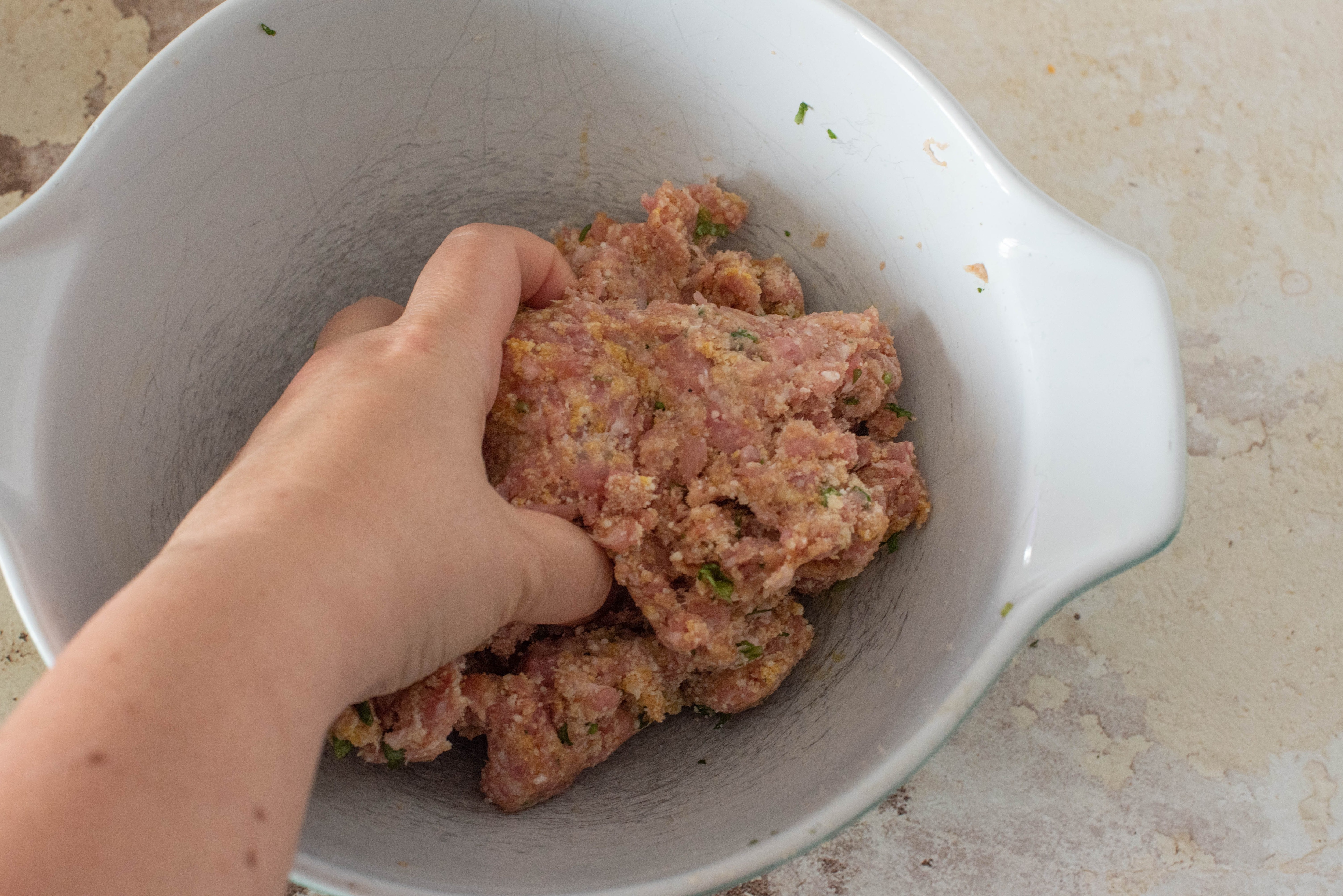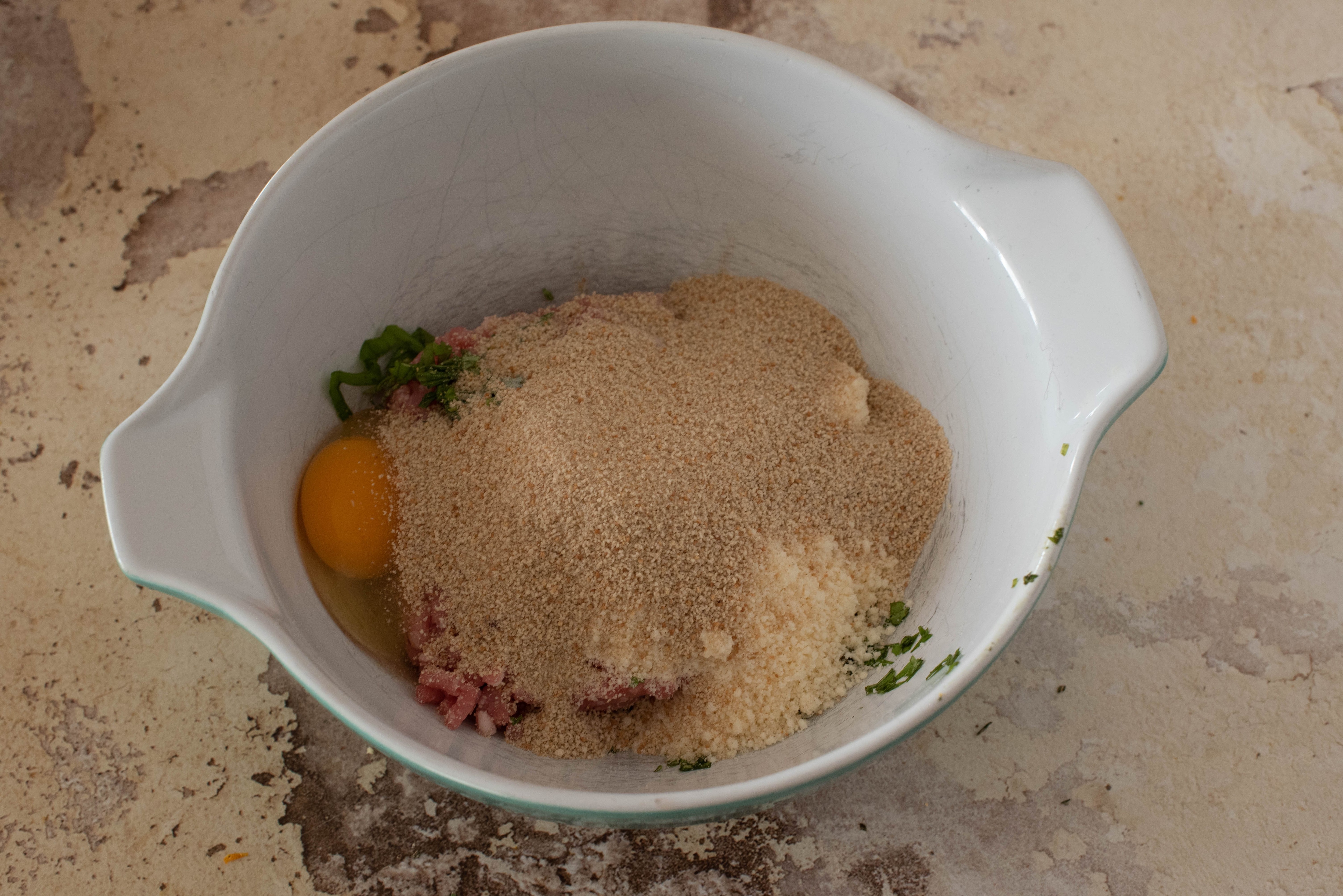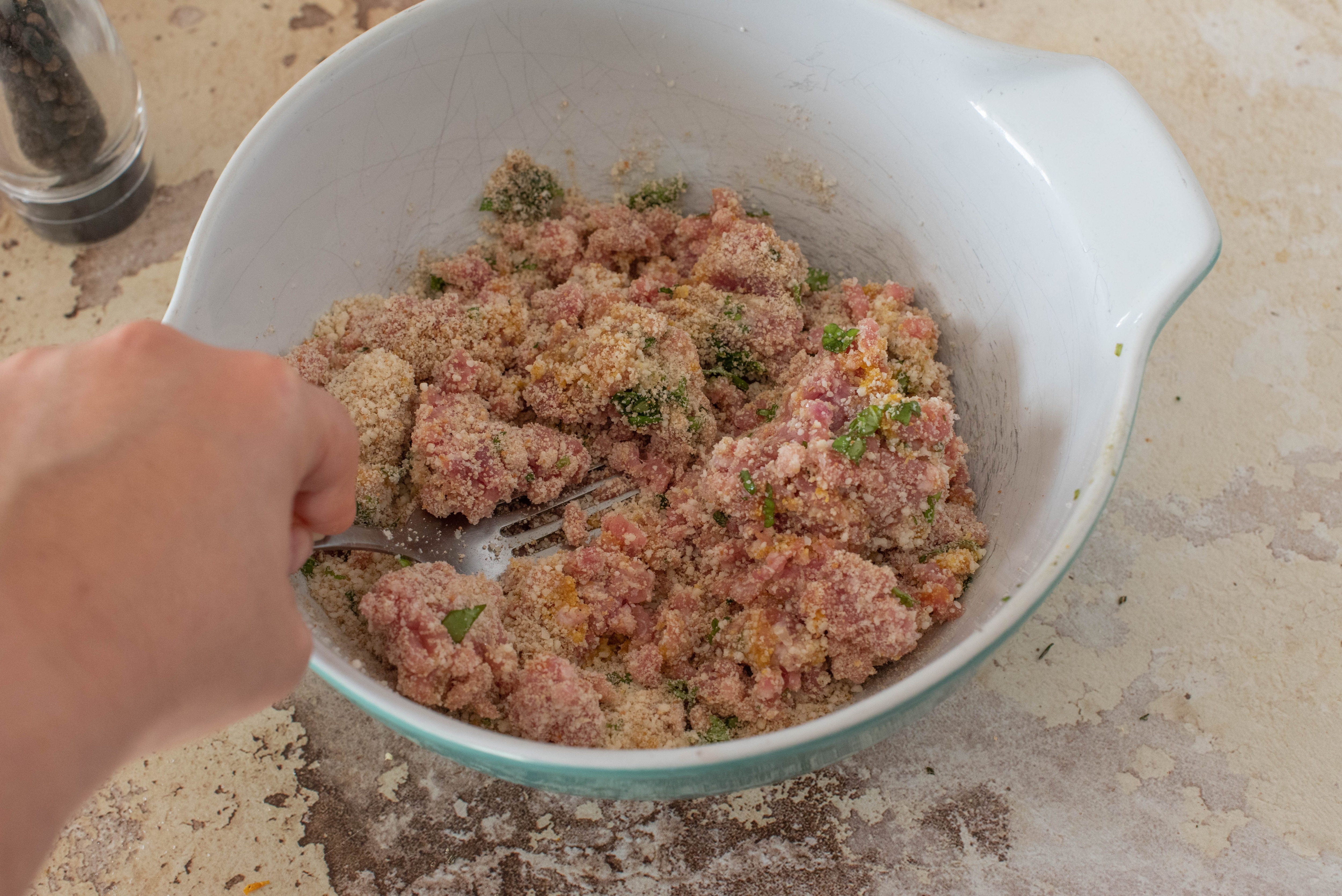 Con la carne picada formar albóndigas de unos 6 cm de diámetro.14.