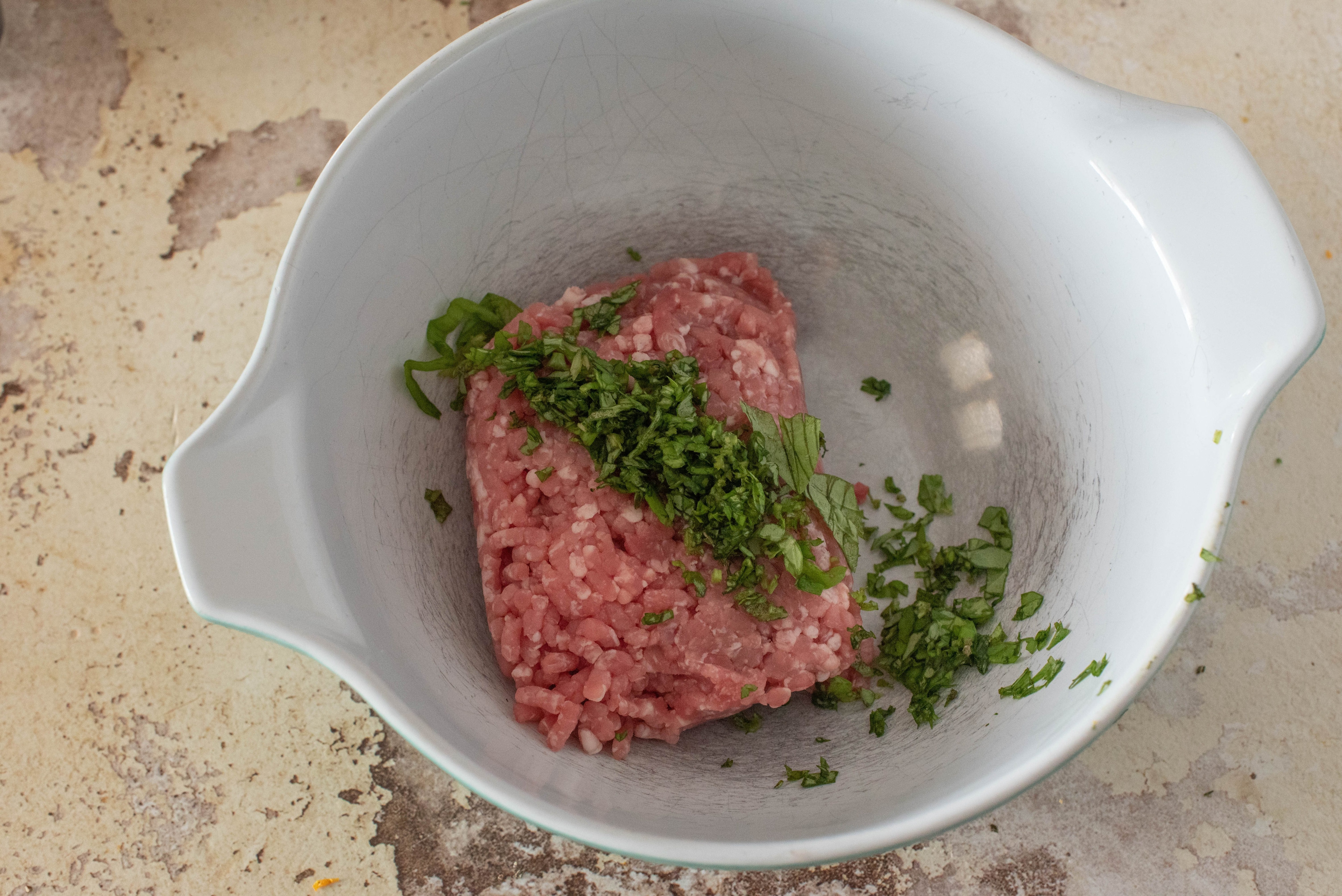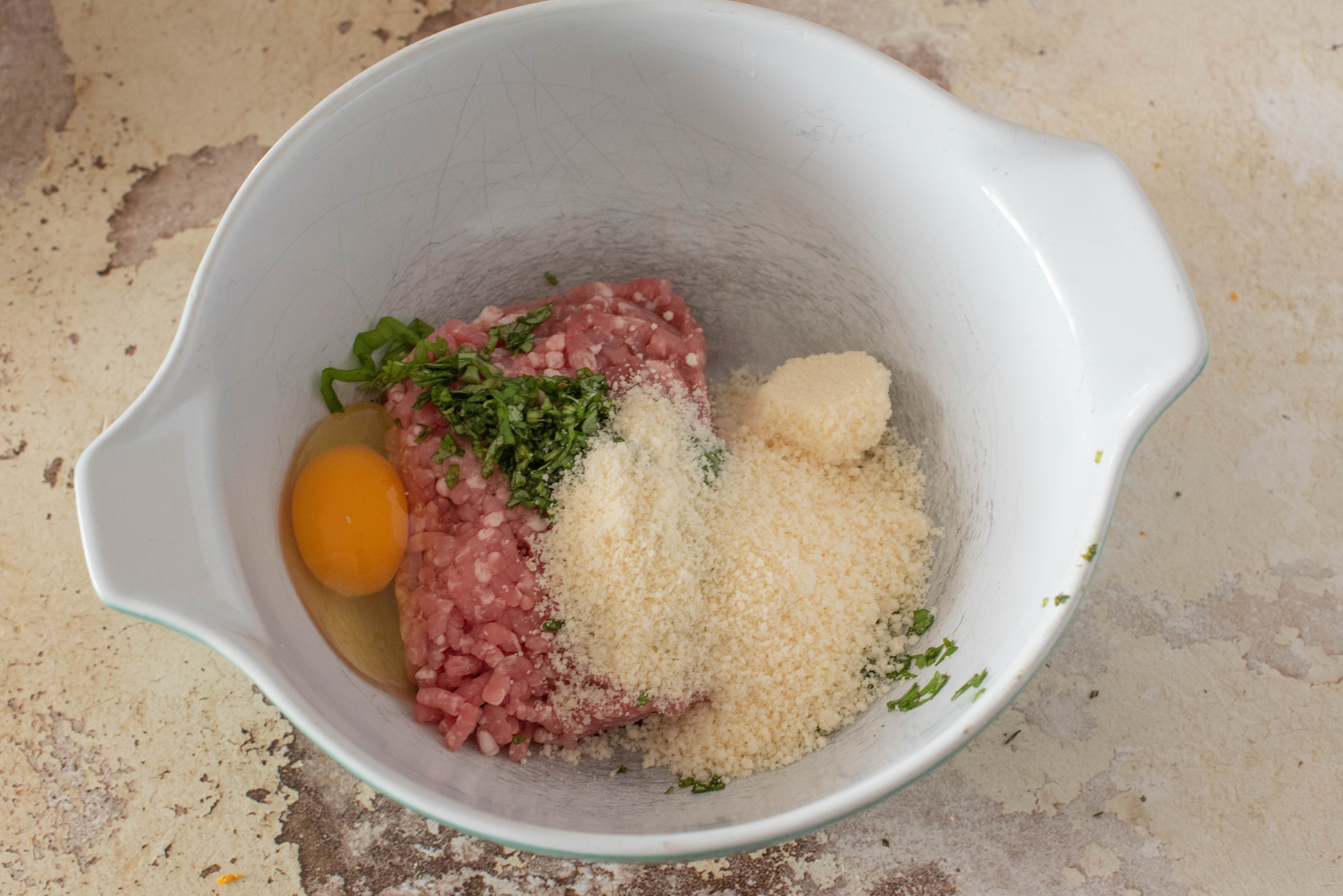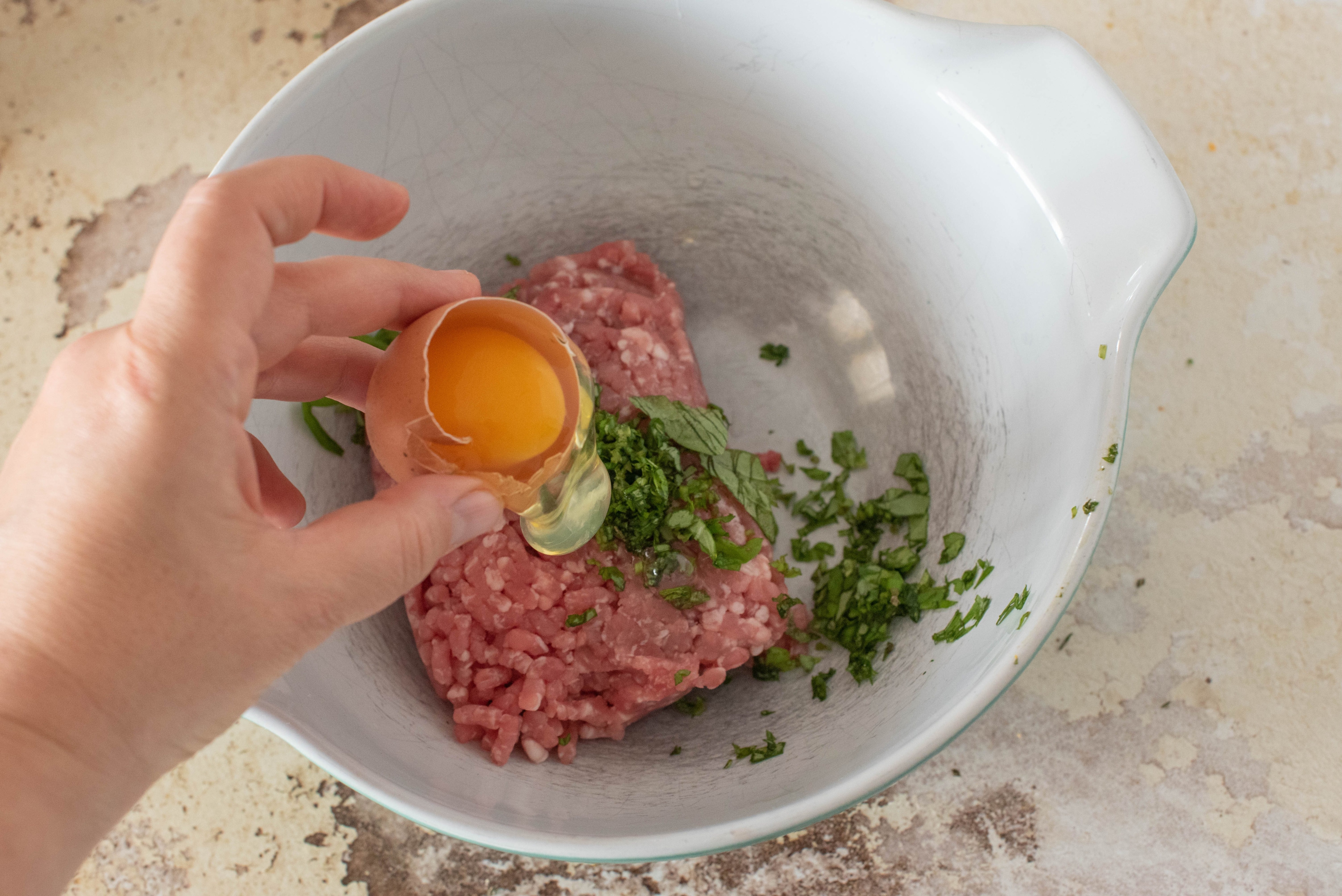 Con la carne picada formar albóndigas de unos 6 cm de diámetro.14.