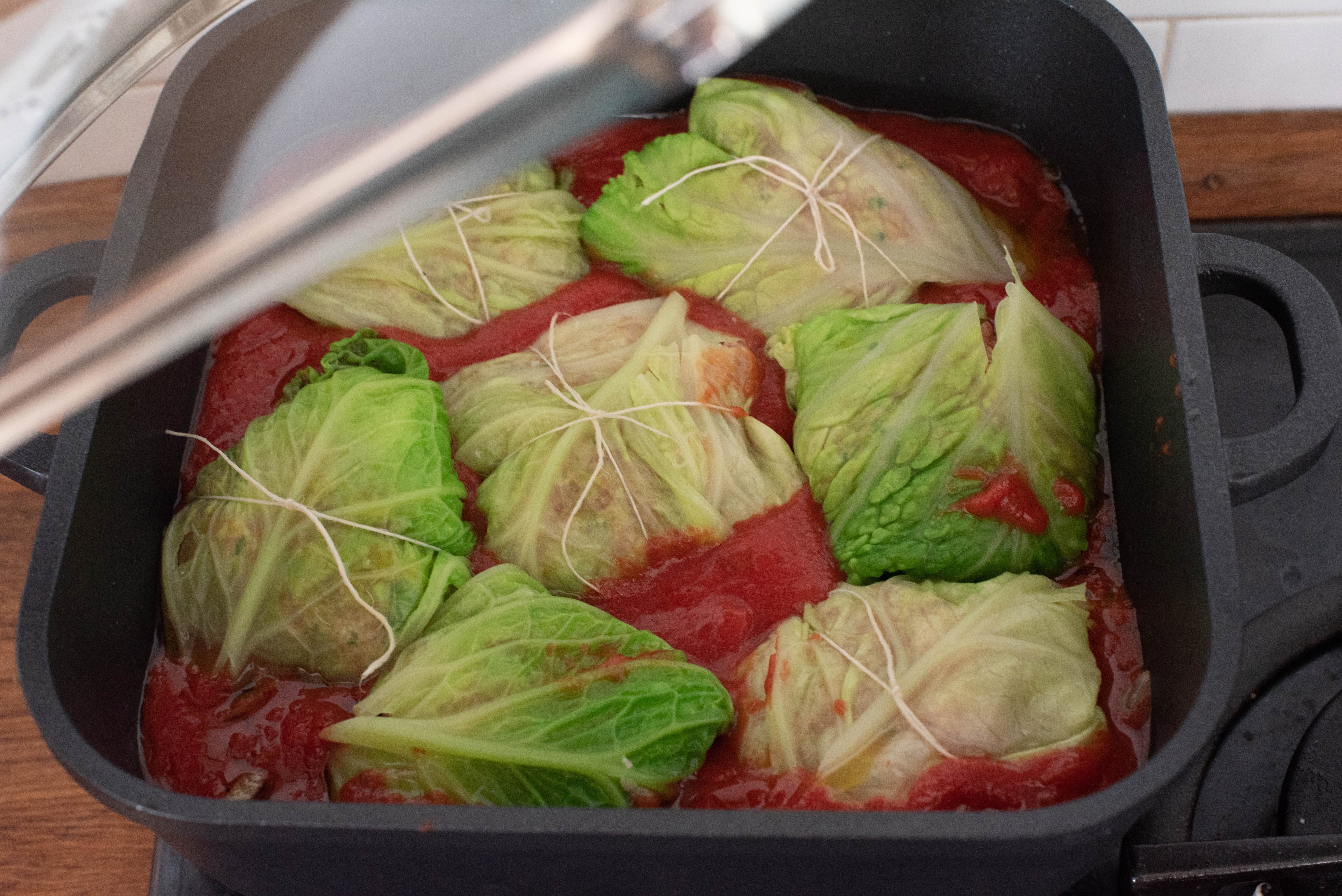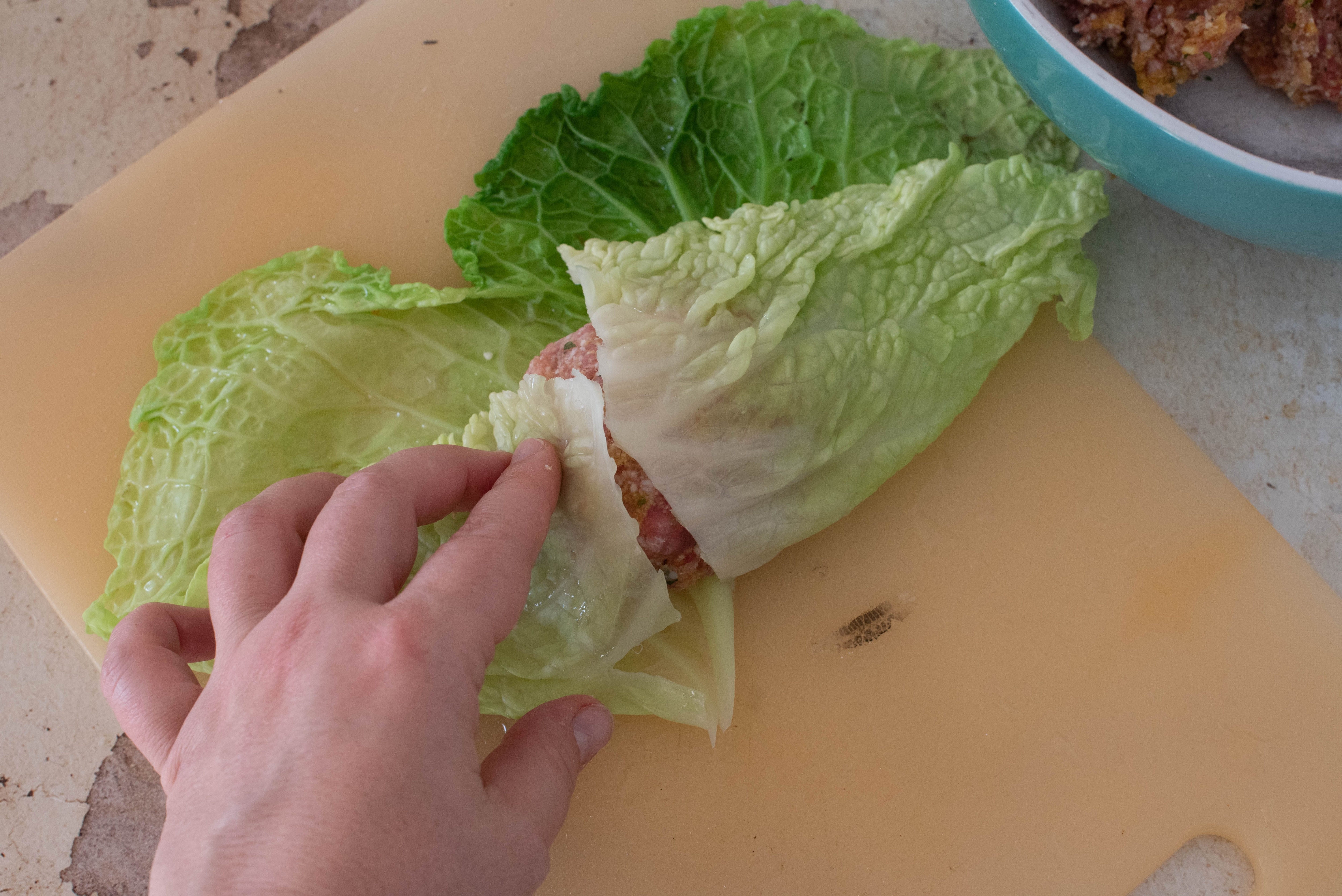 Coloca una albóndiga en el centro de la hoja de col.15.