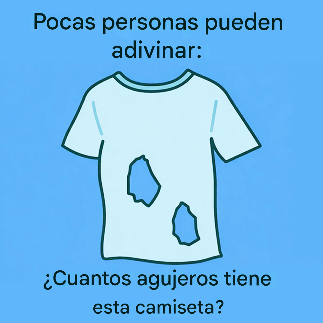 A primera vista, la pregunta parece demasiado fácil. Una camiseta, agujeros… nada más común. Y, sin embargo, este rompecabezas ha dejado perplejos a miles de personas en redes sociales. El tipo de desafío que te da confianza durante tres segundos, antes de sembrar la duda. Así que respira hondo, olvídate de las respuestas fáciles y observa con atención… porque aquí, todo se trata de observar.
