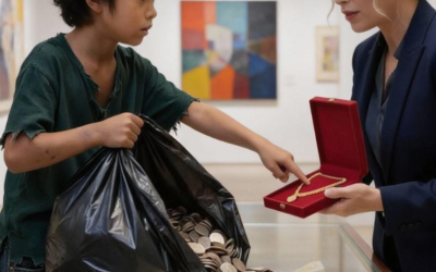 Un chico desaliñado entró en una joyería de lujo y derramó incontables monedas sobre el reluciente mostrador. Un guardia intentó expulsarlo, hasta que el gerente se quedó paralizado al escuchar las palabras del chico que silenciaron a todos los clientes adinerados.