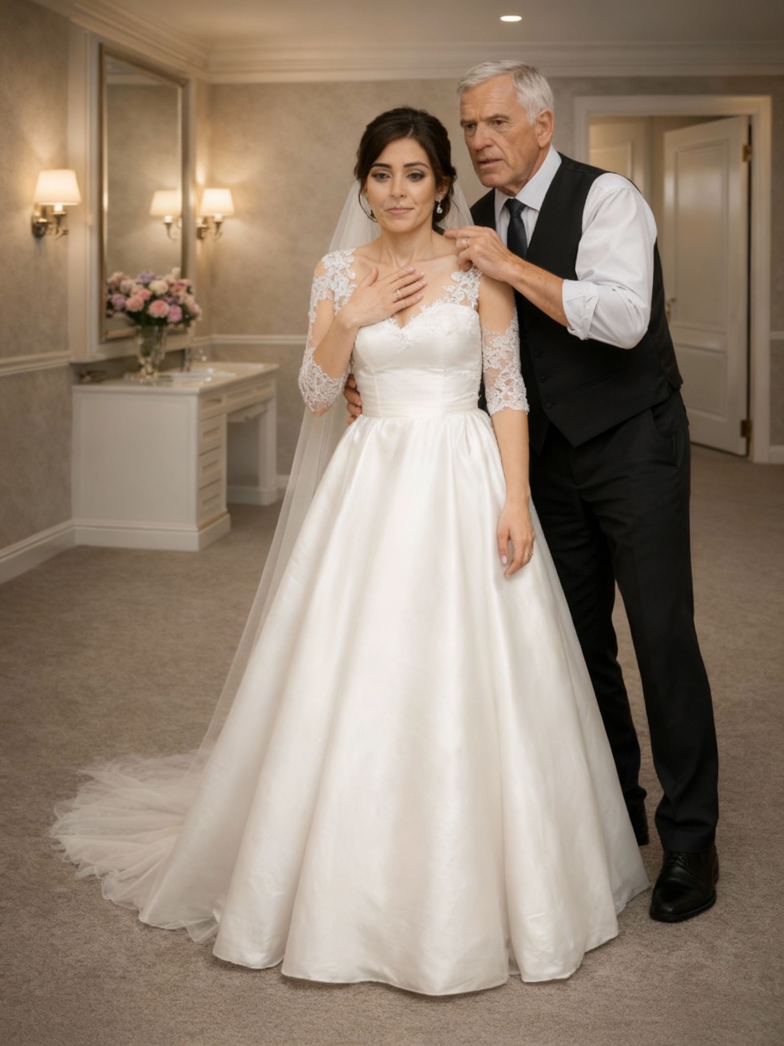 Se ajustó el velo y respiró hondo mientras la puerta se abría silenciosamente. La cabeza canosa de un viejo empleado apareció en la puerta. Se llamaba Michael. Había trabajado para su familia durante muchos años.