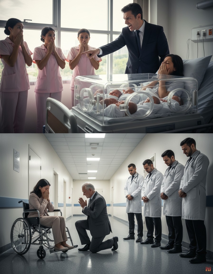 Cuando las enfermeras presentaron a los quintillizos, el silencio en la sala de cunas fue sepulcral. Roberto Salazar no vio milagros; vio lo que él consideraba una ofensa personal. Los cinco bebés tenían la piel oscura, el cabello rizado y rasgos que, en su retorcida visión del mundo, no correspondían a su árbol genealógico. La furia transformó su rostro en una máscara de odio. Irrumpió en la habitación donde Isabel, aún débil y recuperándose de una cesárea múltiple, lo esperaba con una sonrisa que se congeló al instante. Roberto no se acercó a besarla; se detuvo a los pies de la cama y gritó con un desprecio que hizo eco en todo el piso: "¿Quién es el padre de esos niños? ¡Me engañaste! ¡Esto es una burla a mi linaje!".