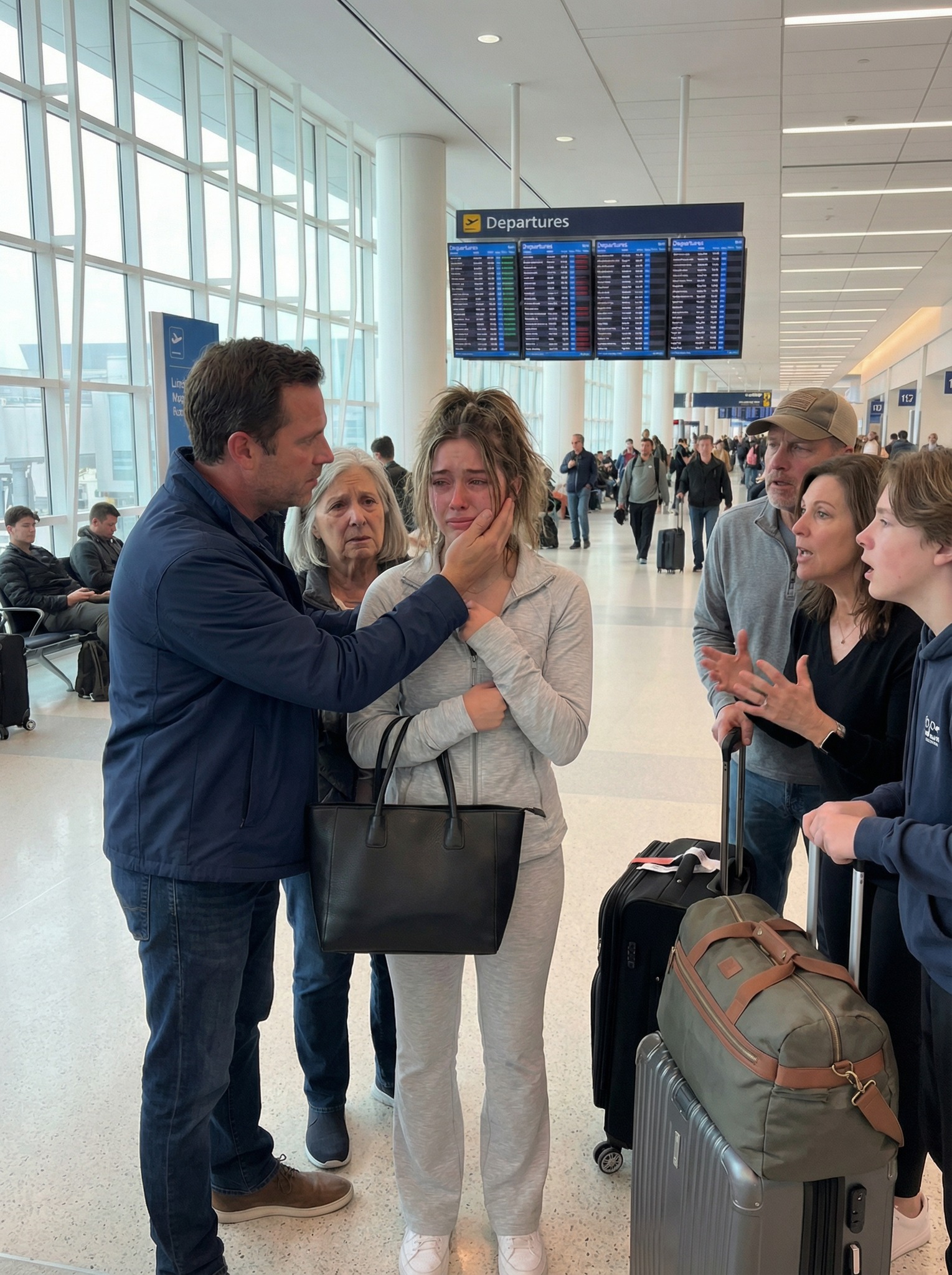 En el aeropuerto, justo antes de nuestro vuelo a Hawái, mi hermana me golpeó de repente en la cara, a la vista de decenas de viajeros. Mis padres corrieron a defenderla de inmediato, como si siempre tuvieran un guion preparado que la presentaba como la víctima y a mí como el problema. Siempre había sido su niña mimada. Lo que ninguno de ellos sabía era que yo había pagado todas las vacaciones. Así que no discutí. No di explicaciones. Simplemente fui al mostrador y cancelé todos sus billetes sin hacer ruido. Luego me di la vuelta y me fui. Lo que sucedió después dejó atónitos a todos los presentes...
