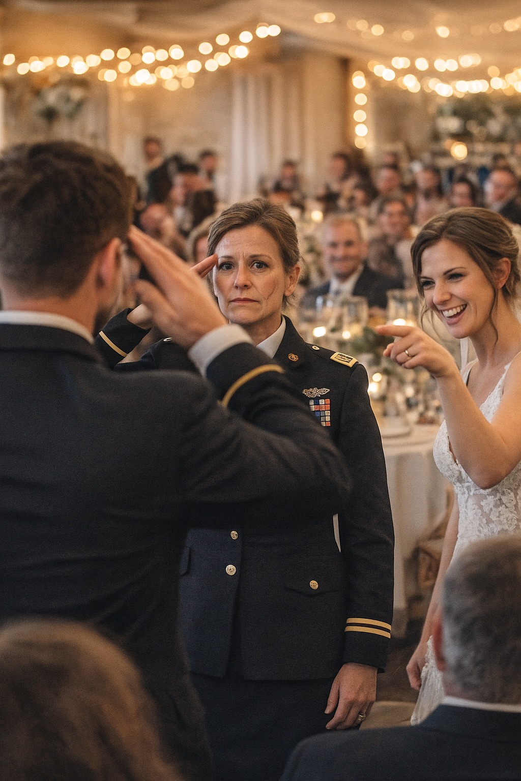 En la boda de mi hermana, se rió de mí delante de todo el mundo. Entonces su novio avanzó, se cuadró, me saludó militarmente y dijo: «Señora…» delante de la sala entera, como si por fin alguien se atreviera a nombrar lo que mi propia familia llevaba años escondiendo.