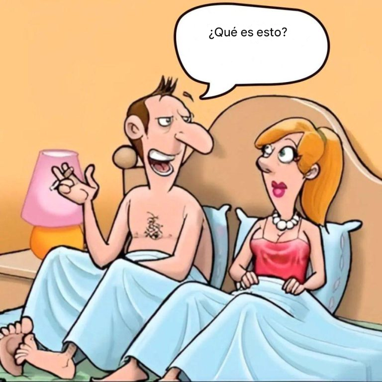 El marido entra, levanta una ceja ante esta extraña "estatua" y pregunta, intrigado: