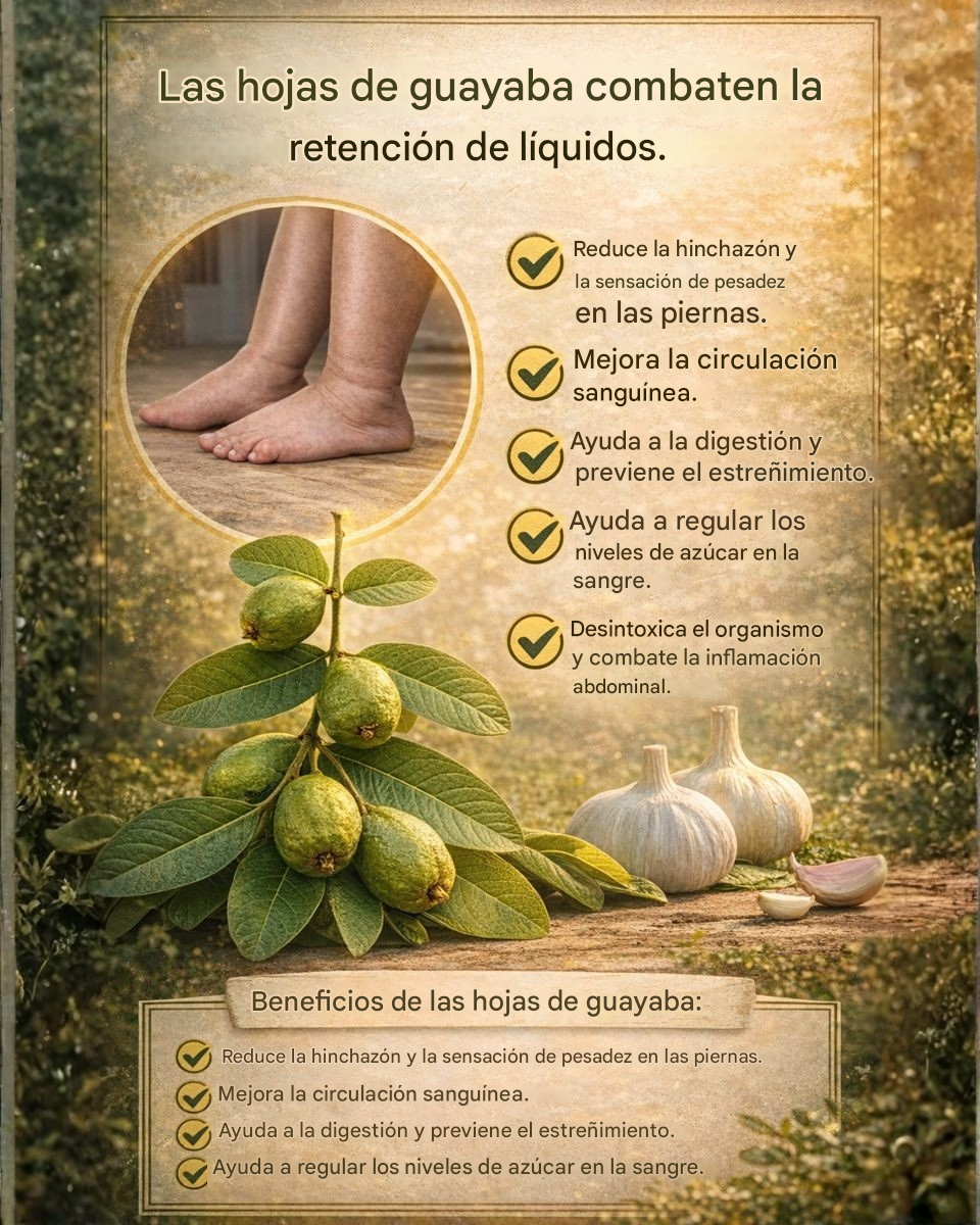 La retención de líquidos es un problema común que afecta a millones de personas en todo el mundo. La hinchazón de piernas, los pies pesados, la distensión abdominal y las molestias abdominales pueden hacer que la vida diaria sea agotadora e incómoda. Si bien muchas personas recurren a medicamentos o diuréticos, la medicina tradicional ha utilizado desde hace mucho tiempo las hojas de guayaba como una alternativa natural, suave y económica.