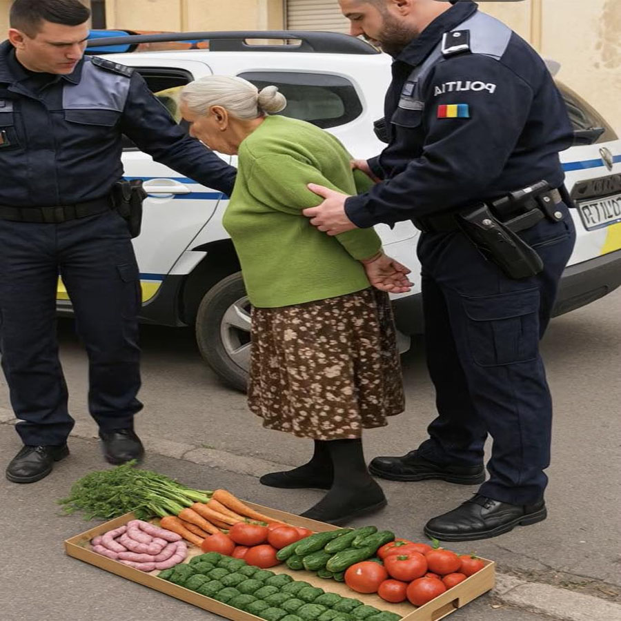 La policía recibió una llamada sobre comercio ilegal en la esquina de la calle principal y acudió al lugar de inmediato. Pero al ver a la inocente anciana con una caja de verduras, su determinación desapareció.