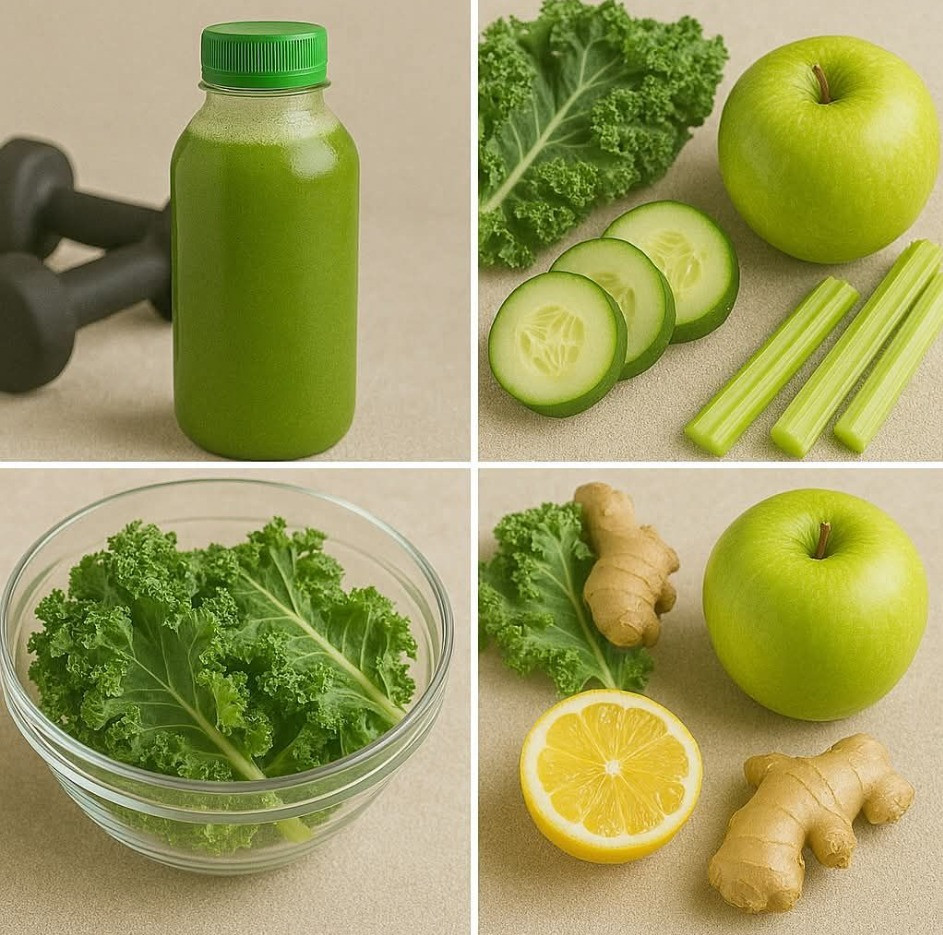 Kale, pepino, apio, manzana, jengibre y limón: un elixir de energía y limpieza.