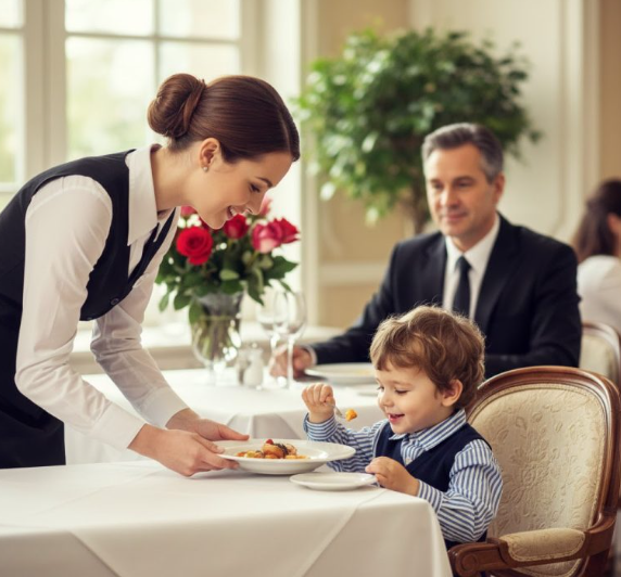 Fue entonces cuando una mesera joven se acercó con pasos cuidadosos. No llegó con prisa ni con el tono perfecto que entrenan en restaurantes de lujo. Llegó como quien se acerca a un animal herido: con respeto.