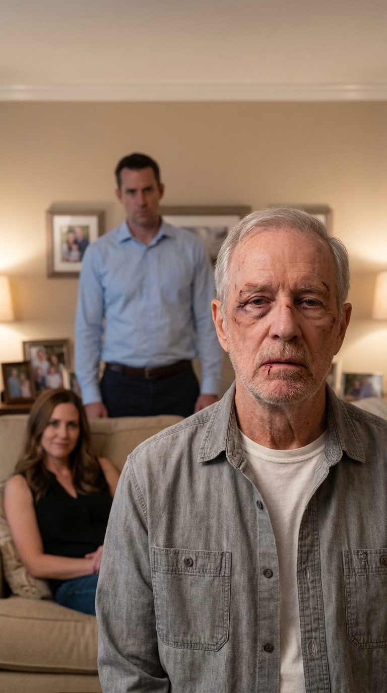 Él creía que le estaba dando una lección a un anciano, mientras su esposa, Amber Collins, permanecía sentada en el sofá observando con una sonrisa silenciosa que transmitía más crueldad que cualquier palabra.