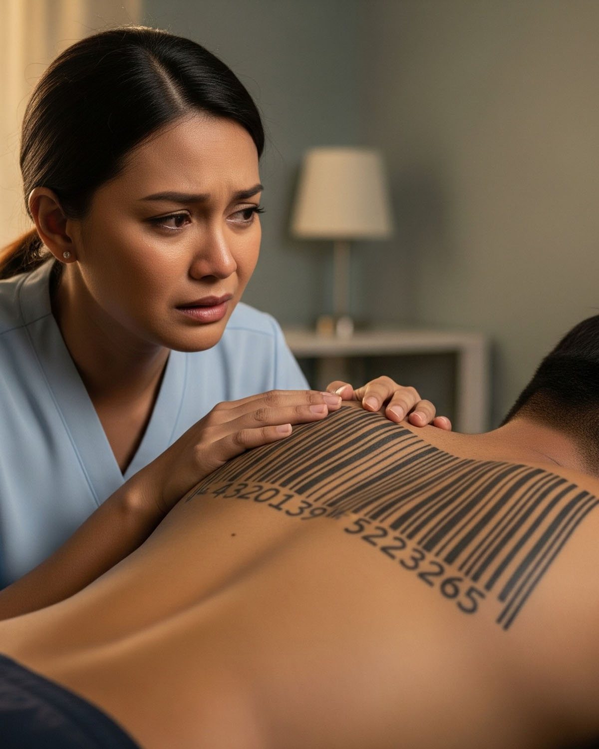 Mientras mi esposo dormía, noté un extraño tatuaje en su espalda que parecía un código de barras: casi me desmayo de la conmoción cuando escaneé el código.