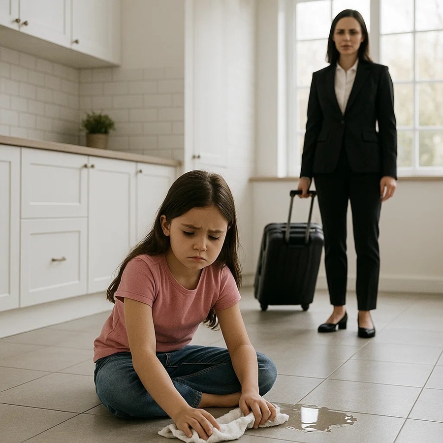 Mi hija de nueve años, Lily, estaba de rodillas en el suelo de la cocina, limpiando.