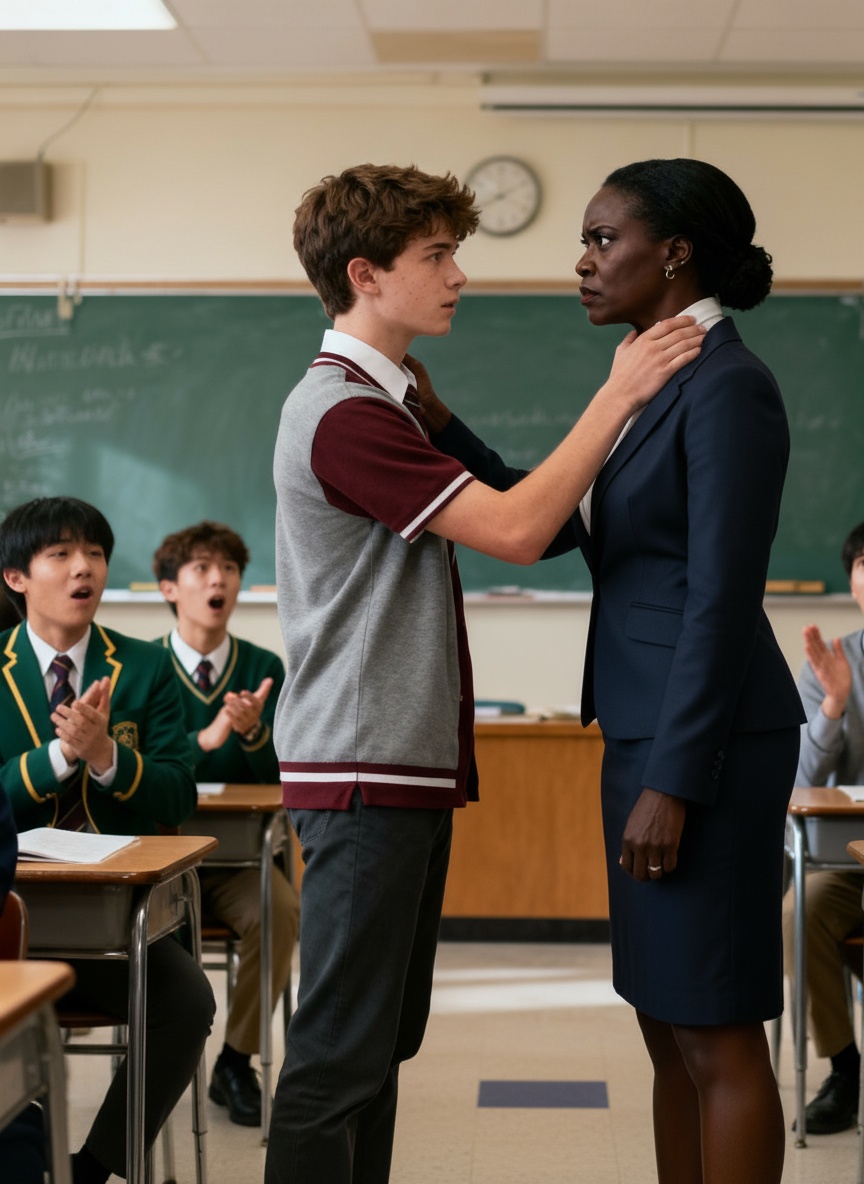El aula se llenó de asombro. Salieron los teléfonos, grabando. Por un instante, la profesora pareció atrapada. Pero la mirada de Naomi, tranquila pero penetrante, contaba otra historia.