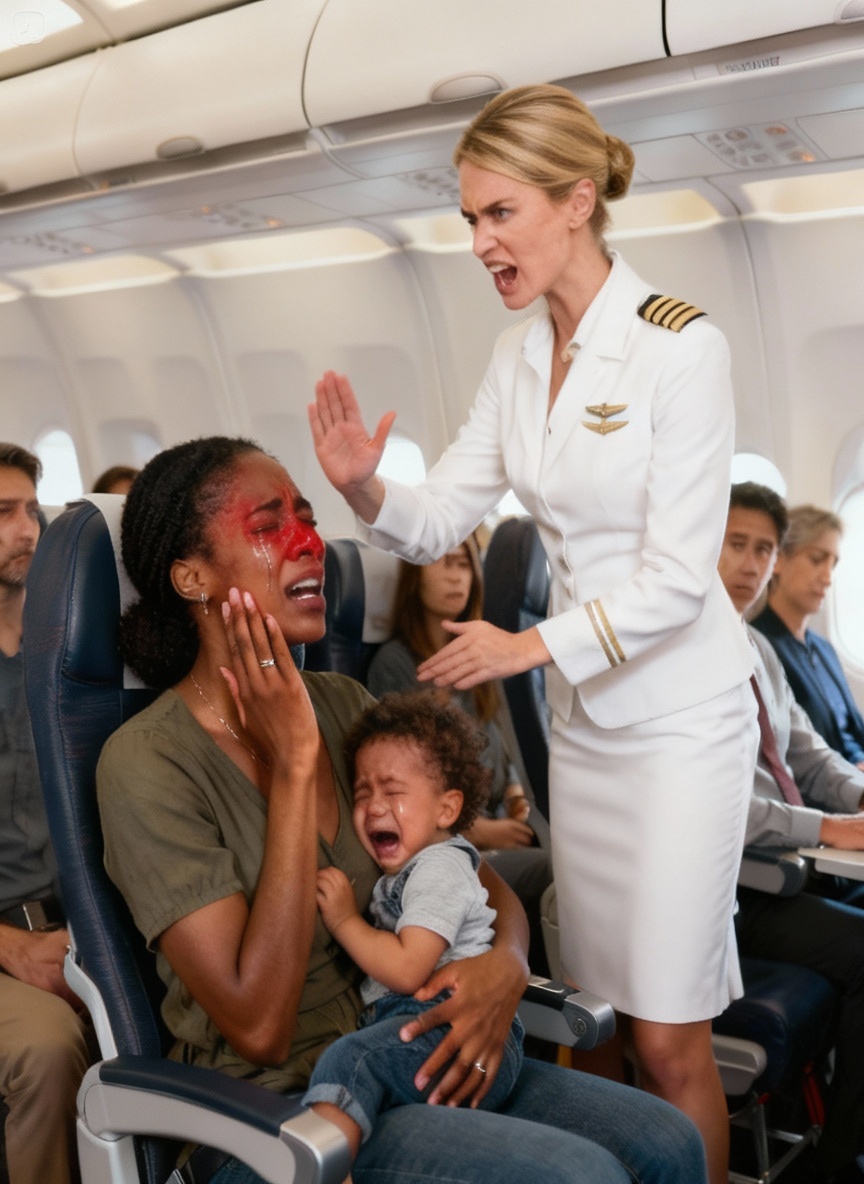 La bofetada fue tan repentina que toda la fila de pasajeros se quedó sin aliento, pero nadie se movió. Una joven madre negra, con su bebé llorando cerca del pecho, acababa de recibir un golpe en la mejilla de un auxiliar de vuelo. El sonido resonó en la cabina, seguido del llanto aterrorizado del bebé. Por un instante, el silencio invadió el avión. La gente miraba fijamente, susurrando, fingiendo no haber visto lo que acababa de ocurrir. Algunos agacharon la cabeza, otros sacaron sus teléfonos como si nada hubiera pasado.
