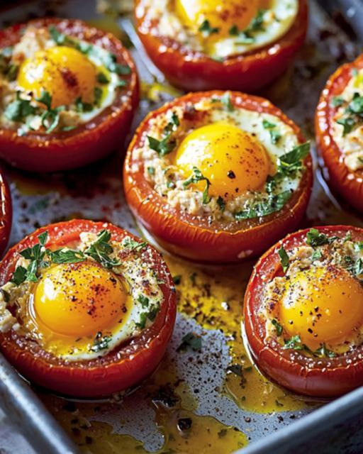 Horneado: Precalienta el horno a 180 °C (350 °F). Coloca los tomates rellenos en una bandeja para hornear y hornéalos durante 20-25 minutos, hasta que estén blandos y el relleno dorado.