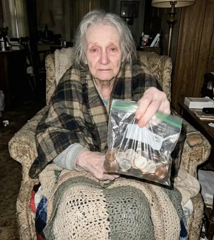 Una anciana estaba sentada en un sillón reclinable desgastado, iluminado por una vela que parpadeaba sobre una mesita auxiliar. Estaba tan arropada con mantas que su cabeza parecía cómicamente pequeña.