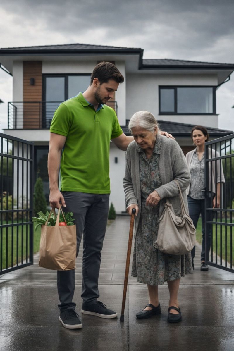Una anciana, la Sra. Helen Carter, cojeaba lentamente por el sendero de grava, golpeando suavemente el suelo con su bastón. Llevaba al hombro una bolsa de lona descolorida; dentro había algunos papeles del hospital y monedas suficientes para una hogaza de pan.