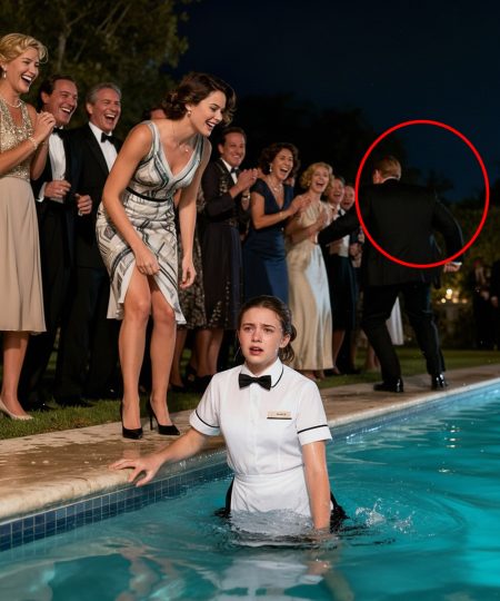 Antes de que Emily pudiera reaccionar, Madison la empujó por el hombro. La bandeja de champán voló por los aires, las copas se rompieron en la terraza de la piscina y Emily se zambulló de espaldas en el agua con un chapoteo.