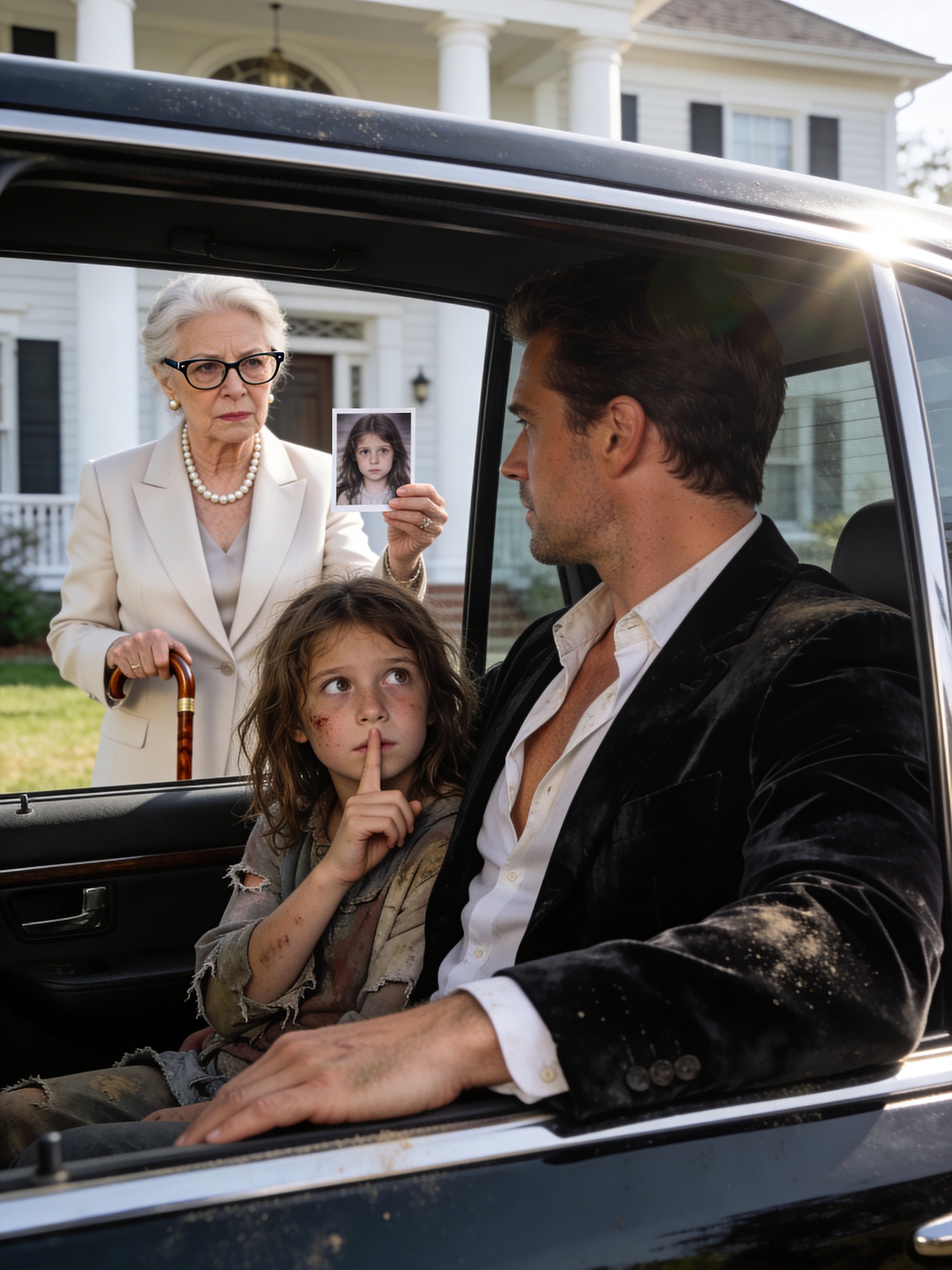 Lily Harper, de ocho años , salió tambaleándose de un sendero embarrado, con sus pequeños pies descalzos resbalando sobre la grava. Su vestido rosa, antes adornado con flores, estaba empapado y rasgado por los bordes. La lluvia le pegaba los rizos a las mejillas. Un moretón oscurecía un lado de su rostro.